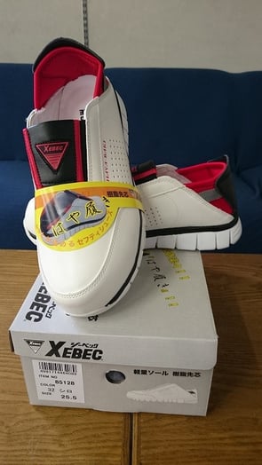 こちらの安全靴は、早履きタイプのセーフティーシューズです。両足で620グラムというのも軽くて便利ですよ。